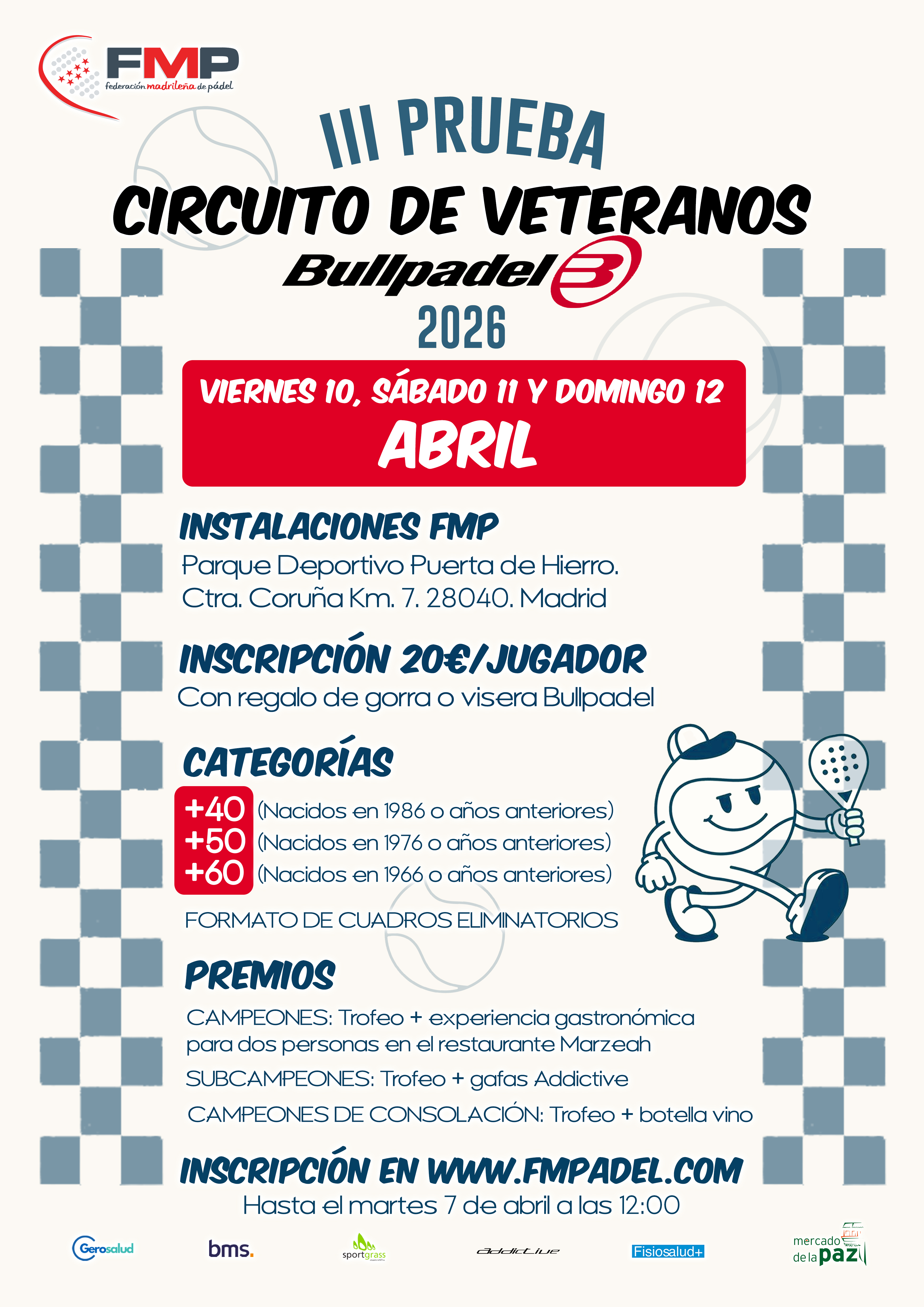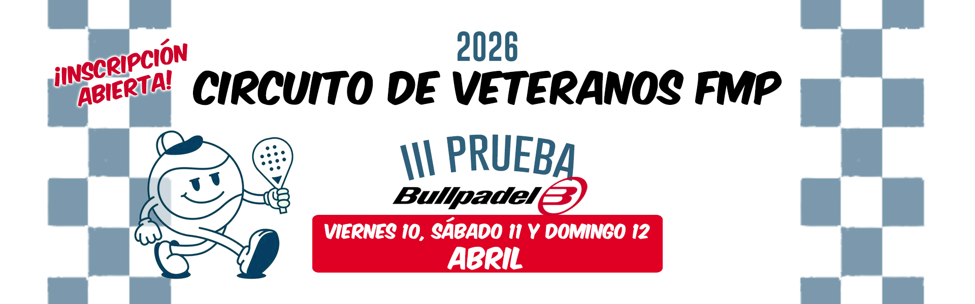 Ya está abierta la inscripción para la III PRUEBA CIRCUITO DE VETERANOS BULLPADEL 2026. Estos son los datos del torneo: